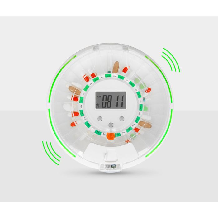 - 28 stora fack för medicin i tablettform.