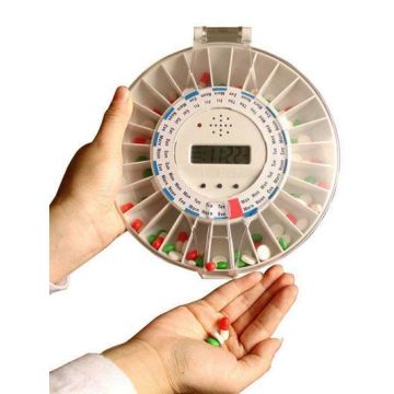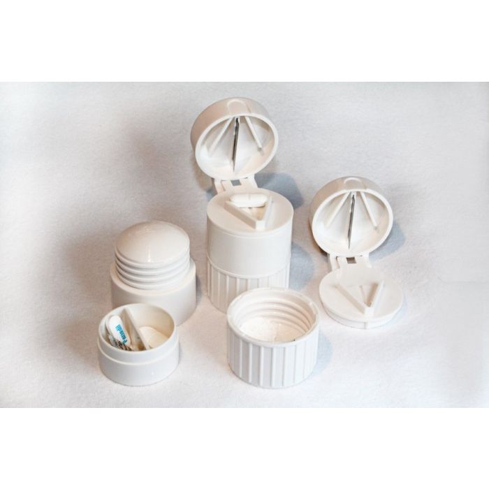 Tablettdelaren kan också användas som kopp när tabletterna ska tas. Praktiskt på resan.